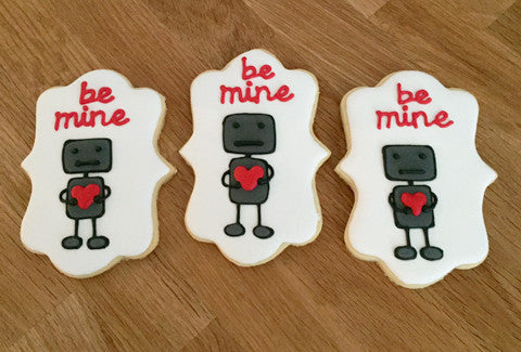 Each set comes with 12 (twelve) homemade sugar cookies decorated with the love robot design and individually wrapped.